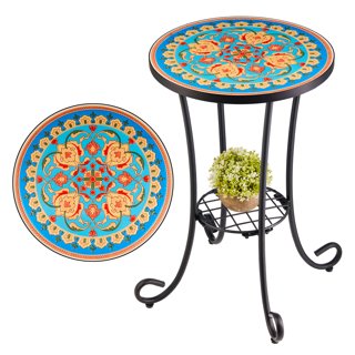 12 039 039 Round Plant Stand Side Table Ceramic Tile Top Indoor Outdoor Plant Holder Ebay
